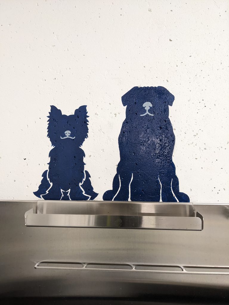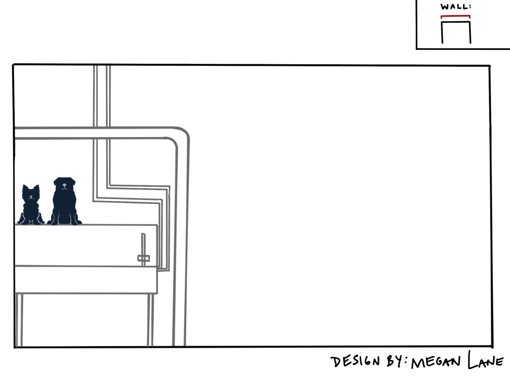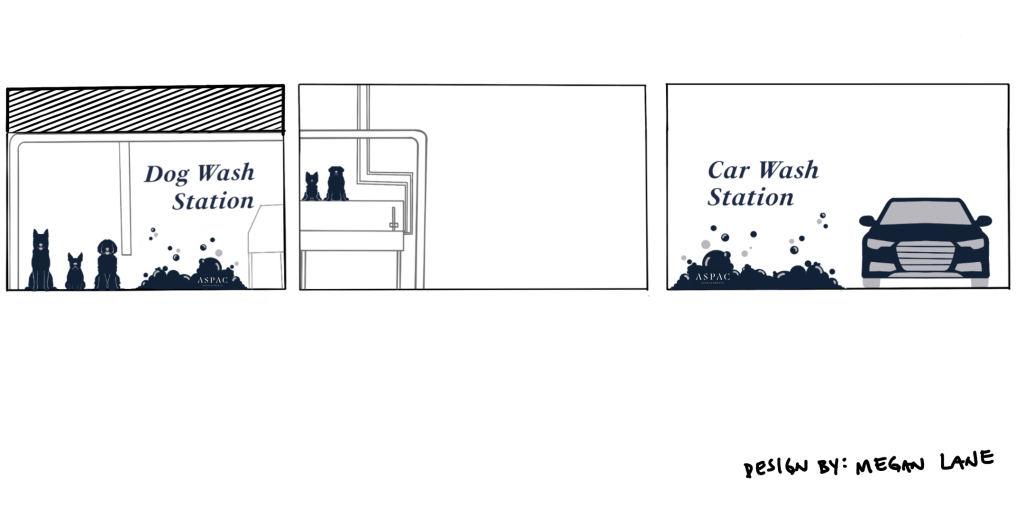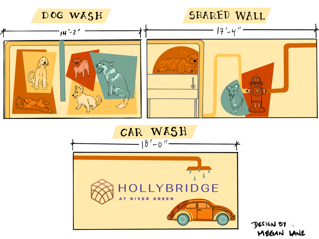 After seeing these ideas, they ultimately decided that what they wanted more than a comprehensive mural was clear signage for their dog and car wash stations, and a silhouette decal look. This was the final design: